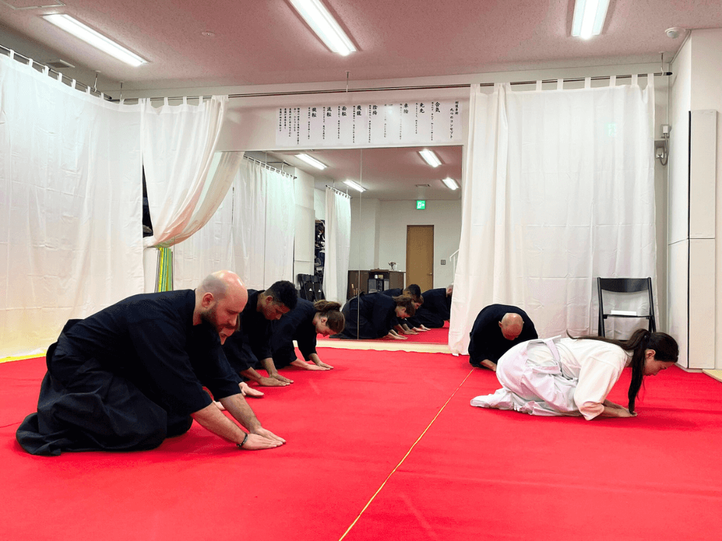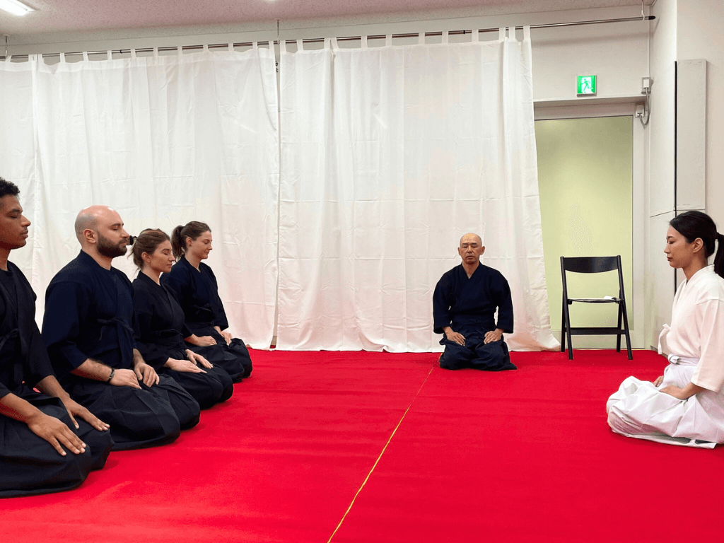 The training begins with learning samurai etiquette and the spirit of Bushido, followed by breathing techniques and meditation to calm the mind.