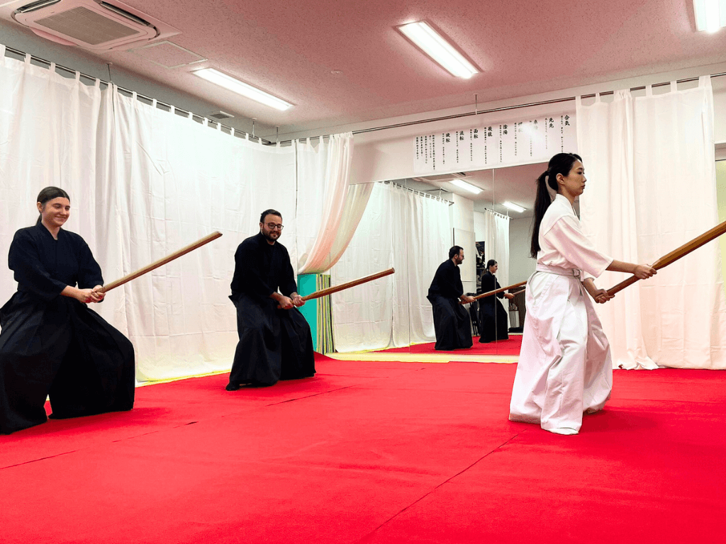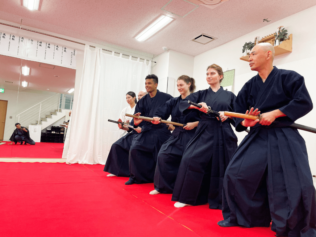 You’ll learn real techniques passed down from the Sengoku era, including etiquette, breathing, posture, cutting and blocking forms, and mental focus—taught by members of the tsurugi samurai squad.